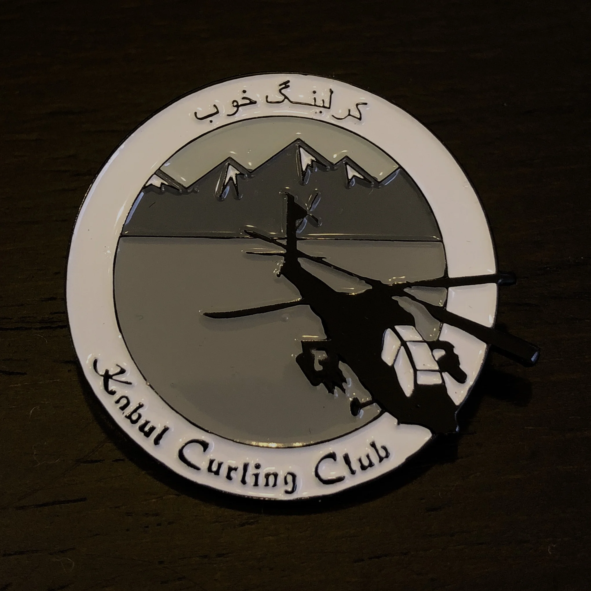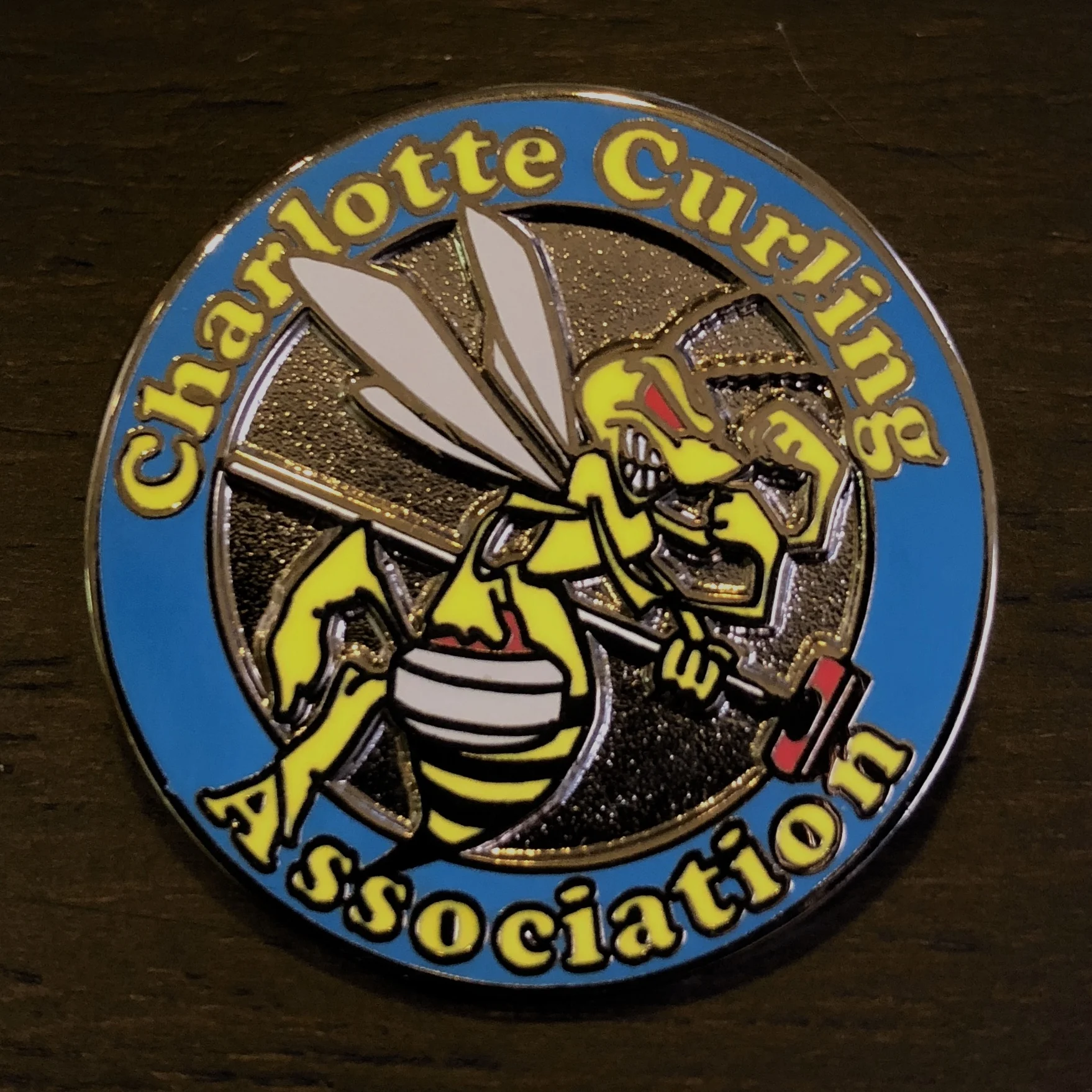 If a bonspiel (curling tournament) has a trophy, odds are you don't get to take it home with you when you win. Instead, winners' names are typically engraved on a trophy that stays put, while the players get to take home medals in the form of a pin. Curling clubs also have their own logo pins made for their members to trade with players from other clubs at bonspiels.